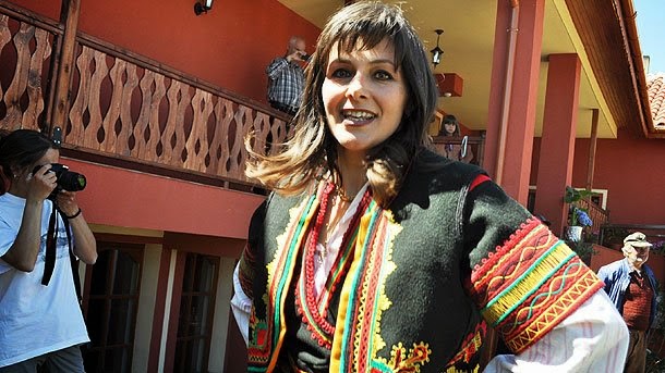 Бети Василева посреща своите гости с хляб, сол и народни танци. |