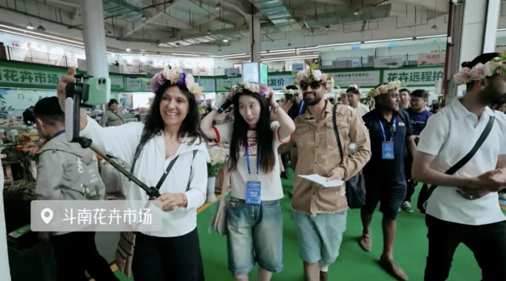 Кунмин в Китай плантация ЮнанВ града се намира вторият по големина пазар на цветя в света след Холандия. А цветната борса в Доунан е не просто тържище, а гигантска индустрия, обединяваща логистика, онлайн търговия и селекция в реално време. Докато хиляди търговци и брокери преговарят чрез дигитални платформи, милиони рози, гербери, орхидеи и прочие потеглят към различни точки на Азия.