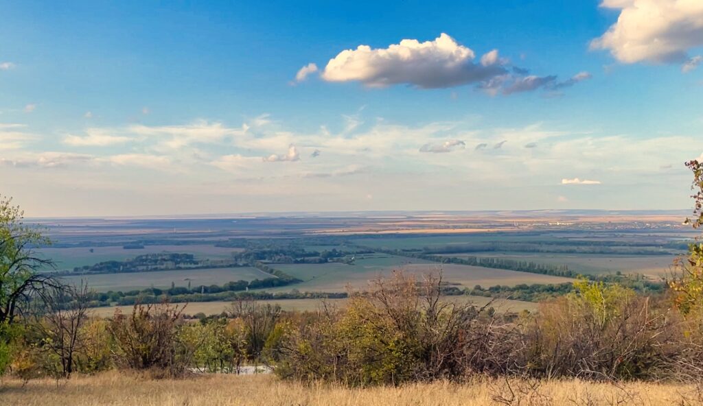 Като зелено море, чак до хоризонта се разстила Дунавската равнина, ако застанете от другата страна на завоя. Там има леко уширение на пътя, където да паркирате автомобила си.