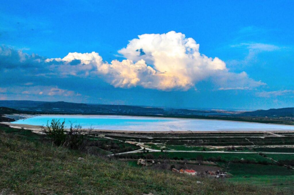 As a backdrop to the ethereal chapel, a strikingly beautiful lake spreads out below, shimmering in shades of emerald and turquoise. The colour is so unnatural that it looks like it’s been over-processed in Photoshop by an amateur photographer. This artificial basin collects toxic wastewater from the Devnya industrial plants. It also serves Solvay Devnya, one of Bulgaria’s largest chemical factories.